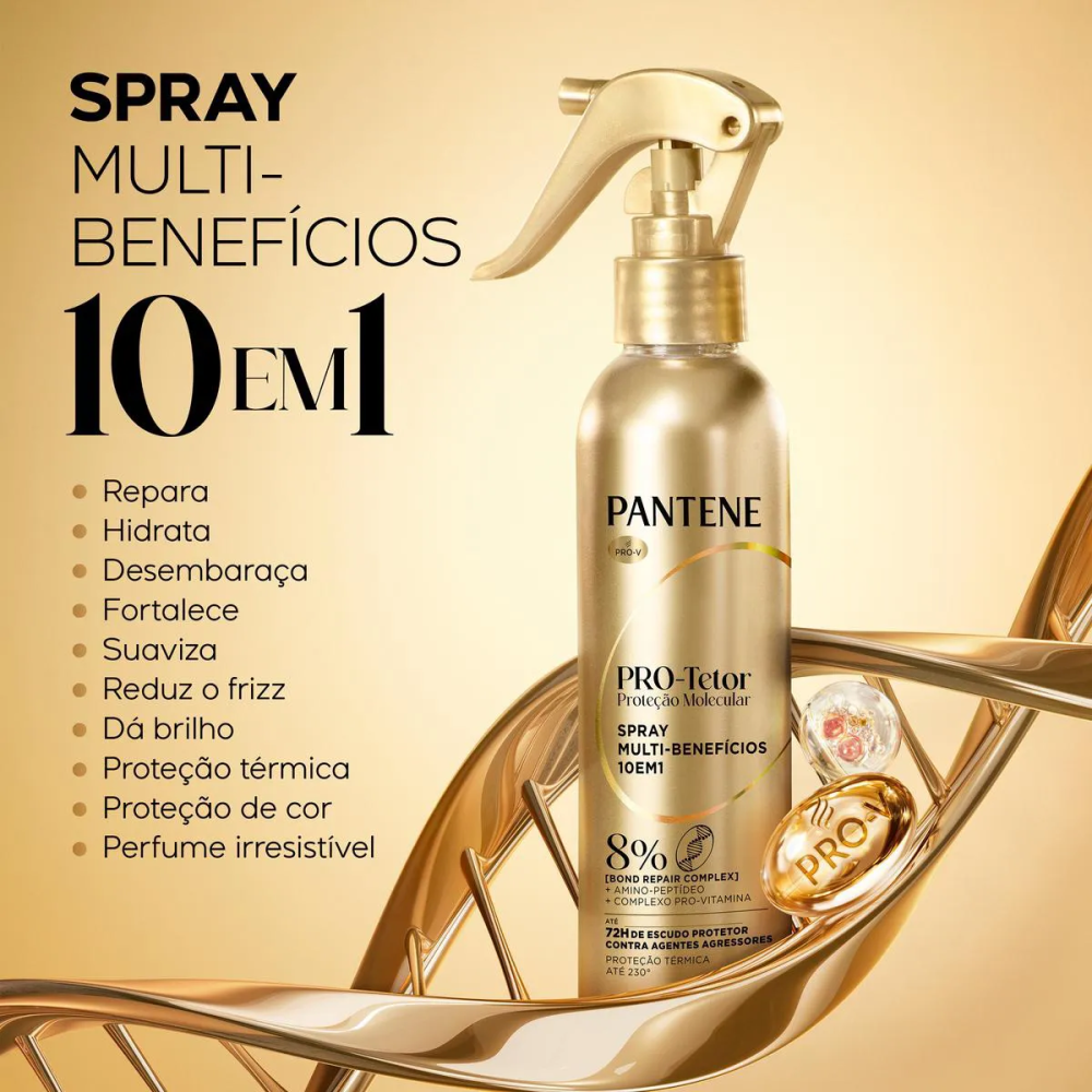 O Spray Pantene Pró-Tetor Proteção Molecular Multi-Benefícios 10 em 1 Bond Repair 170ml foi desenvolvido para cuidar dos cabelos de forma prática e eficaz. Sua fórmula oferece 10 benefícios em um único produto, auxiliando na proteção contra danos, fortalecimento dos fios, redução do frizz e melhora da maciez e do brilho. Ideal para uso diário, ajuda a manter os cabelos mais saudáveis, alinhados e protegidos das agressões externas.