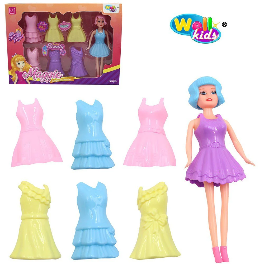 A Boneca Maggie Desfile de Vestidos 7 Peças é ideal para estimular a criatividade e a imaginação das crianças a partir dos 3 anos. O conjunto inclui a boneca e diversos vestidos, permitindo criar diferentes combinações e cenários de brincadeira. Produzida com materiais seguros e resistentes, proporciona momentos de diversão enquanto incentiva o desenvolvimento social, emocional e a coordenação motora de forma lúdica e educativa.