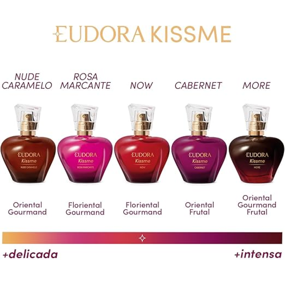 A Deo Colônia Eudora Kiss Me Cabernet 50ml é uma fragrância feminina intensa e sofisticada, criada para mulheres que gostam de marcar presença. Com aroma envolvente e marcante, combina notas inspiradas na sensualidade e elegância, resultando em uma fragrância moderna e cheia de personalidade. Ideal para uso noturno ou ocasiões especiais, proporciona excelente fixação e um perfume que se destaca ao longo do dia.