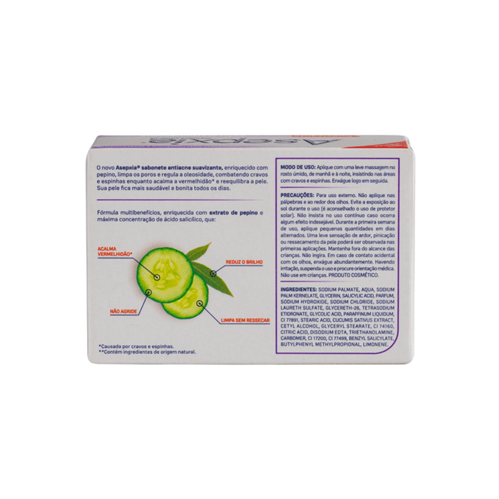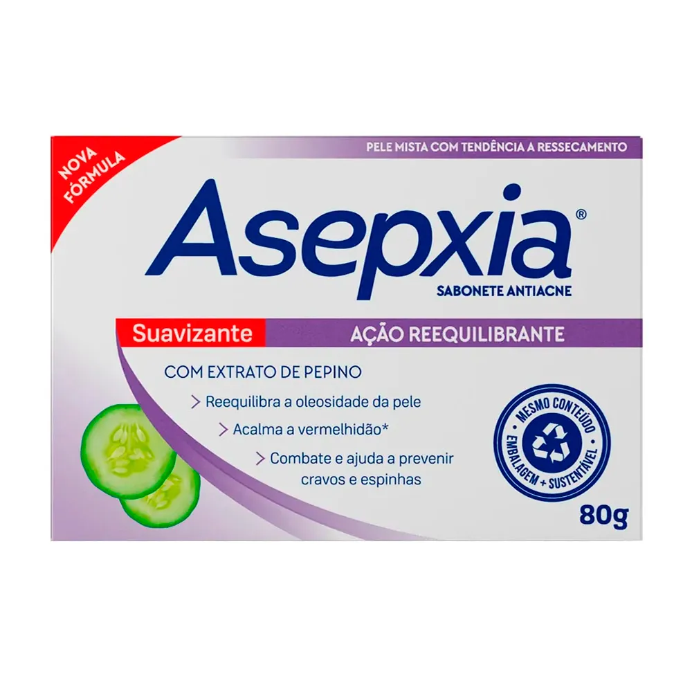 O Sabonete Facial Asepxia Suavizante Ação Reequilibrante 80g foi desenvolvido para limpar a pele de forma eficaz e delicada, auxiliando no equilíbrio da oleosidade natural. Sua fórmula suavizante ajuda a remover impurezas do dia a dia sem agredir a pele, contribuindo para uma sensação de conforto e frescor após o uso. Indicado para uso diário, especialmente para peles oleosas e com tendência à acne.