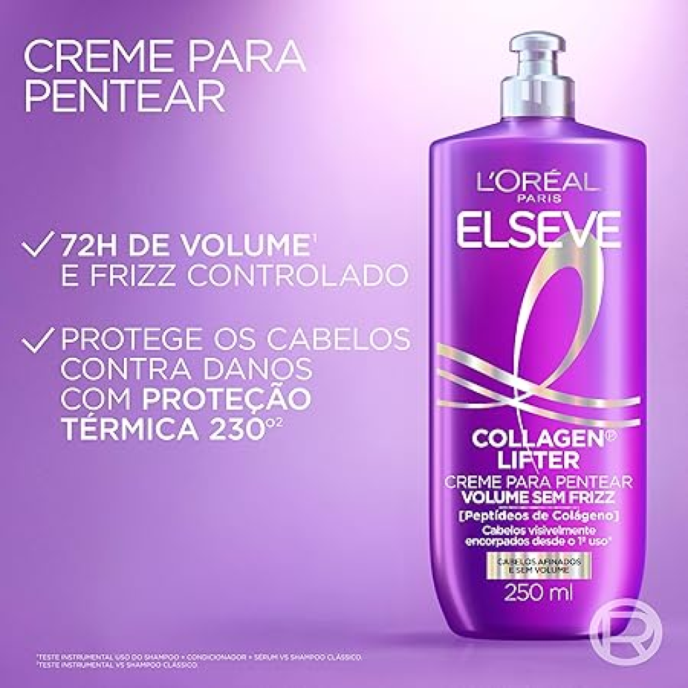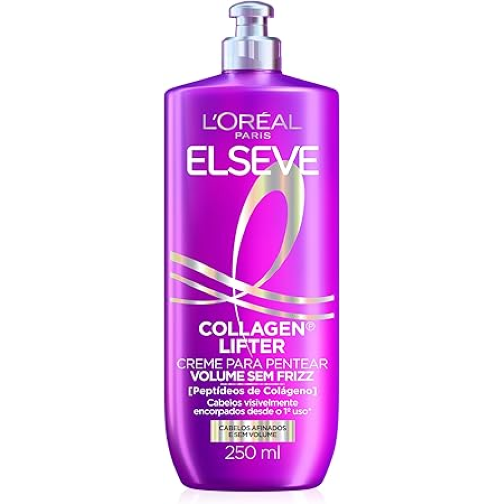 O Creme para Pentear Volume Sem Frizz Elseve Collagen Lifter 250ml é ideal para quem busca fios mais encorpados, alinhados e com volume natural. Sua fórmula enriquecida com colágeno ajuda a controlar o frizz, facilitar o pentear e proporcionar sensação de cabelo mais denso, macio e leve, sem pesar os fios.