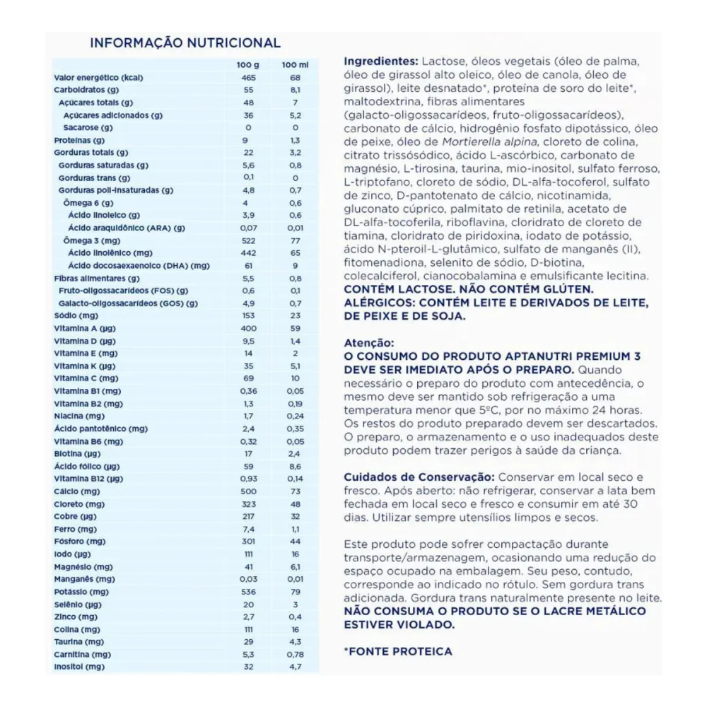 Sua fórmula é desenvolvida com DHA e ARA, importantes para o desenvolvimento cerebral e visual, além de vitaminas e minerais essenciais que auxiliam no crescimento saudável, na imunidade e no bem-estar infantil.