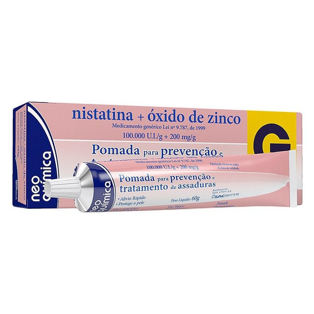 A Pomada para Assaduras com Nistatina 100.000UI/g + Óxido de Zinco 200mg/g 60g é indicada para o tratamento e prevenção de assaduras, especialmente aquelas associadas a infecções por fungos.