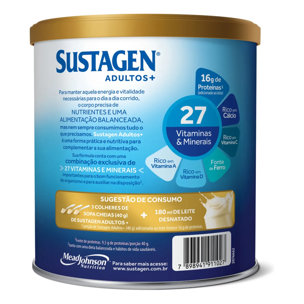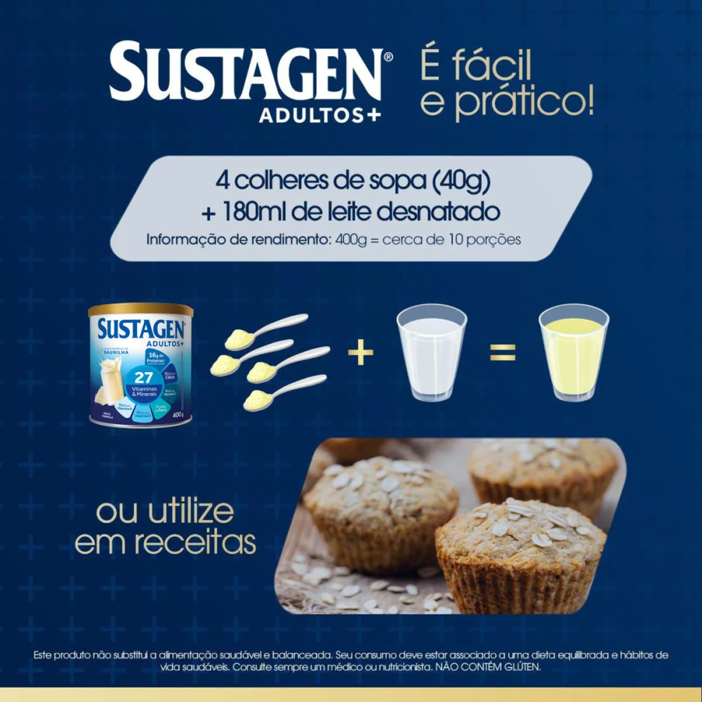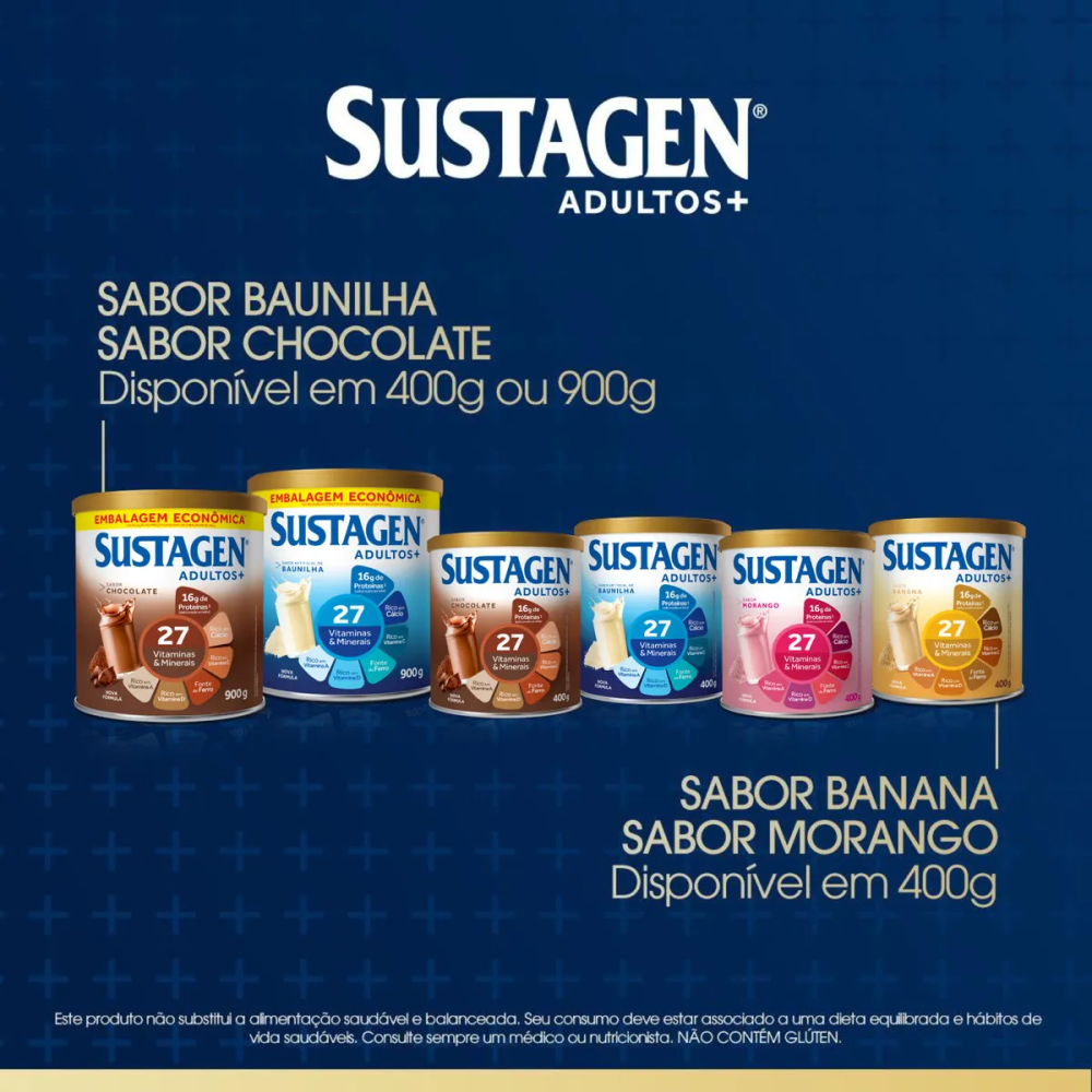 O Sustagen Adultos+ Sabor Baunilha 400g é um suplemento nutricional desenvolvido para complementar a alimentação de adultos que buscam mais nutrição, energia e disposição no dia a dia.