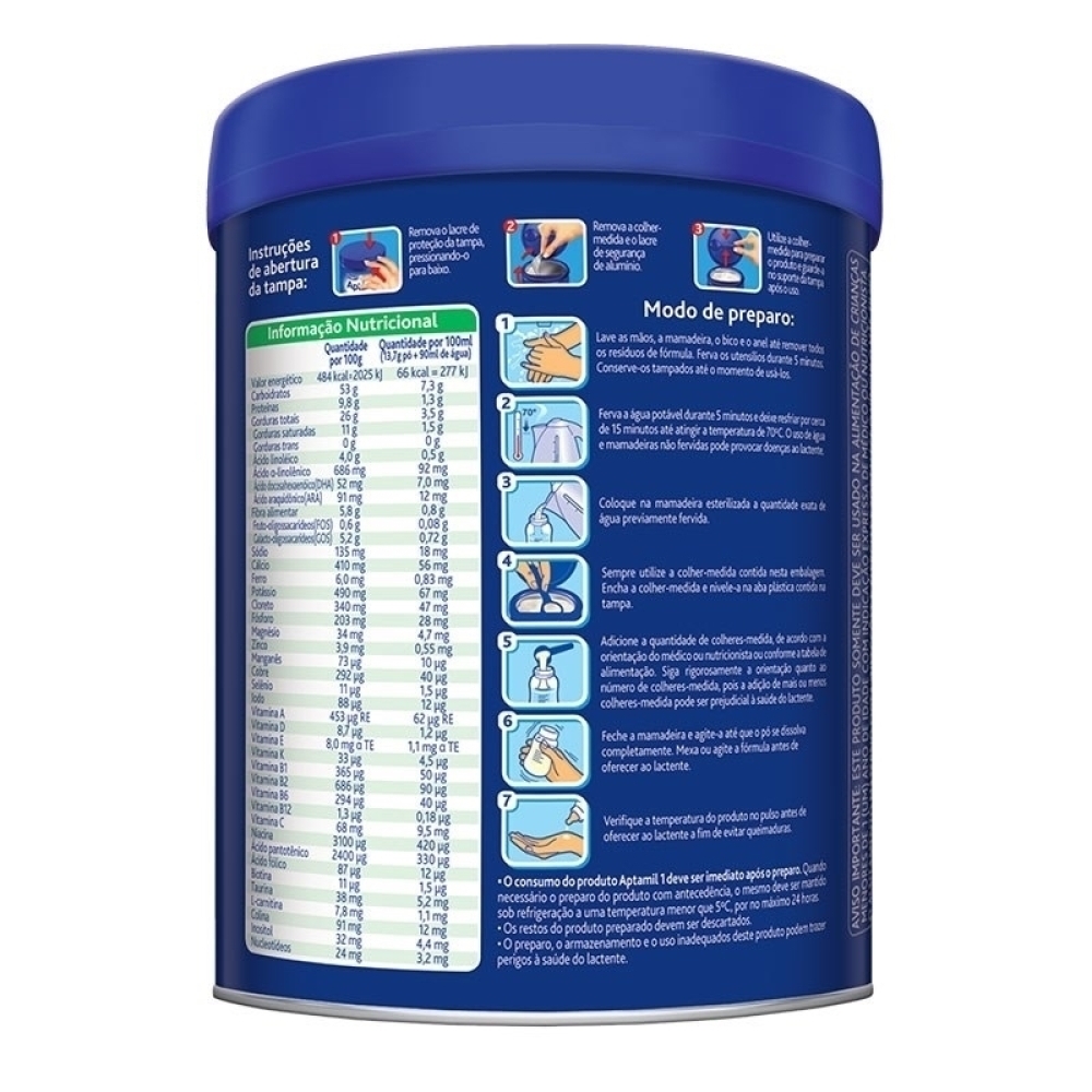 Advertências: o aleitamento materno é recomendado. Use esta fórmula apenas sob orientação de médico ou nutricionista. Prepare exatamente conforme instruções do fabricante. Não aqueça a mamadeira no micro-ondas. Mantenha fora do alcance de crianças.