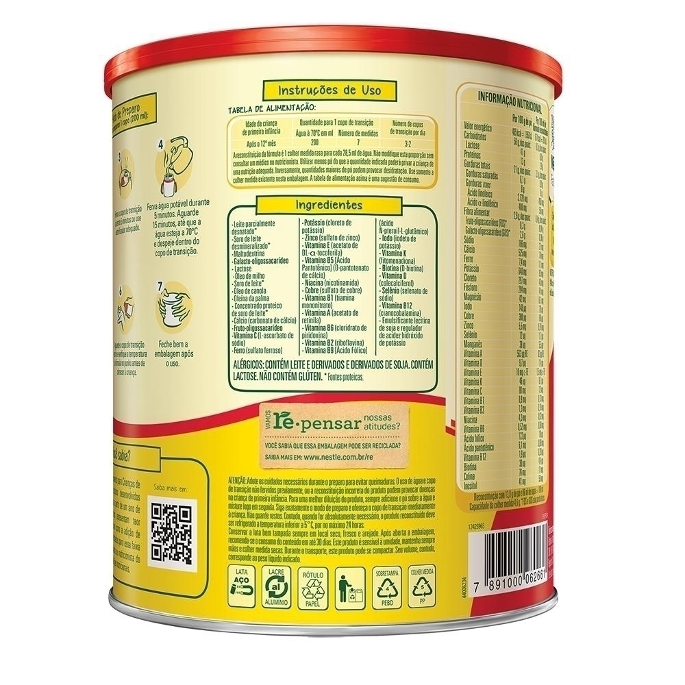 Advertências: este produto não é fórmula para lactentes e não é indicado para menores de 1 ano. Use conforme orientação do pediatra ou nutricionista. O aleitamento materno é recomendado por 2 anos ou mais.