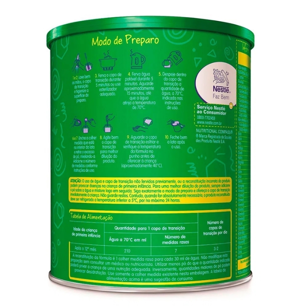 Advertências: este produto não é fórmula para lactentes e não é indicado para menores de 12 meses. Utilize conforme orientação do pediatra ou nutricionista. O aleitamento materno é recomendado por 2 anos ou mais.
