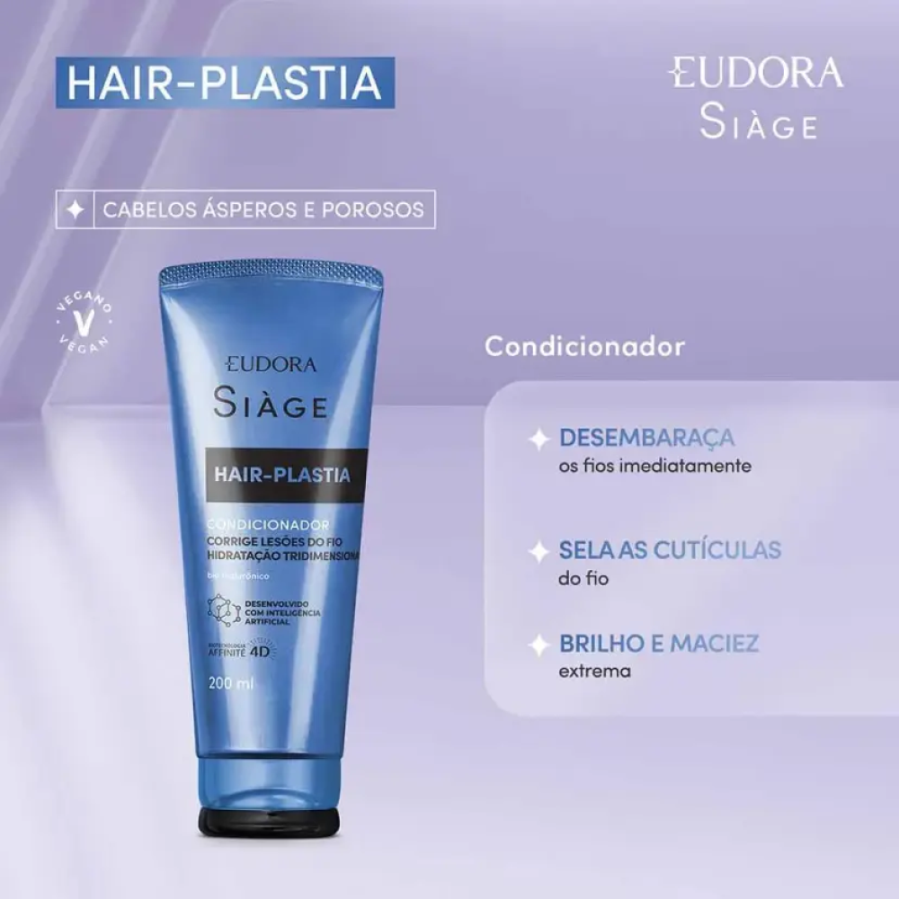 O Siage Hair-Plastia Condicionador 200ml foi desenvolvido para promover a reparação profunda do cabelo danificado, actuando directamente na fibra capilar. A sua fórmula avançada ajuda a reduzir a quebra, melhora a resistência dos fios e devolve a maciez natural do cabelo. Ideal para uso frequente, proporciona um cuidado completo, deixando os fios mais fortes, alinhados e com aspecto saudável.