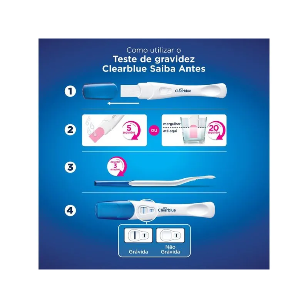 O Teste de Gravidez Clearblue Saiba Antes – Contém 01 Teste foi desenvolvido para auxiliar na detecção precoce da gravidez, possibilitando resultados antes mesmo do atraso menstrual, conforme orientações do fabricante. Com alta confiabilidade, identifica a presença do hormônio hCG na urina de forma prática, segura e discreta. Ideal para quem busca maior antecedência e tranquilidade na confirmação da gravidez.