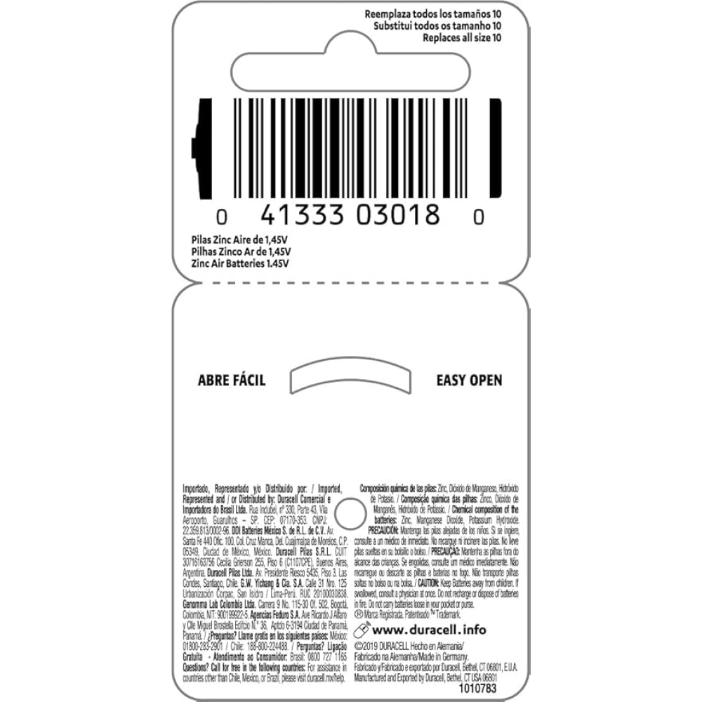 As Pilhas Auditivas Duracell Nº 10 Pack 6 Unidades foram desenvolvidas para oferecer energia confiável e de alta performance para aparelhos auditivos compatíveis. Proporcionam fornecimento estável de energia, contribuindo para um melhor desempenho do dispositivo e maior autonomia no uso diário. De fácil manuseio e substituição, são ideais para garantir qualidade sonora e segurança no dia a dia.