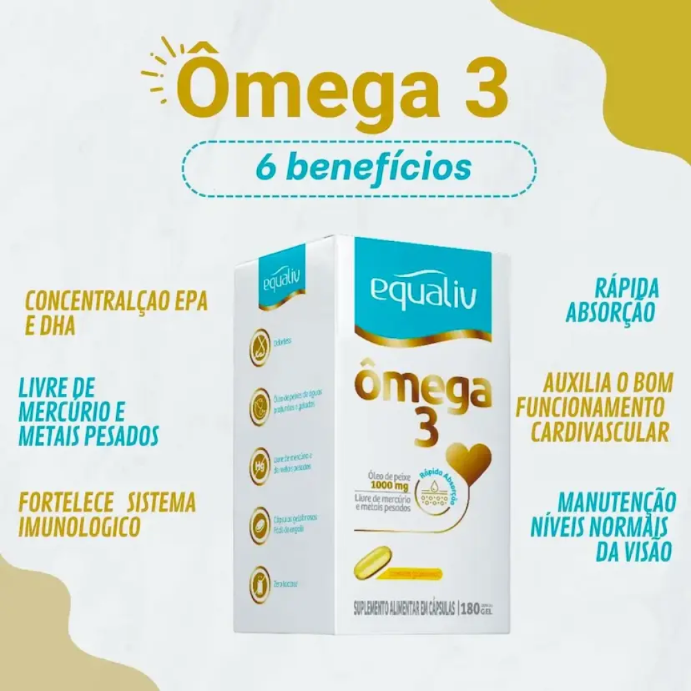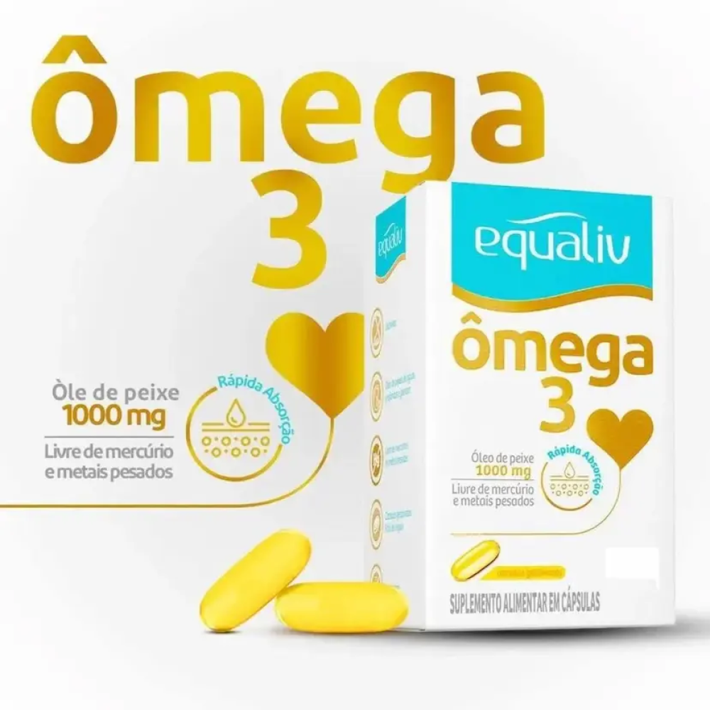 O Ômega 3 1000mg Equaliv com 180 Cápsulas Gel é um suplemento alimentar formulado com ácidos graxos essenciais, importantes para a manutenção da saúde cardiovascular e do funcionamento do organismo. Ideal para complementar a alimentação diária, contribui para o equilíbrio nutricional e o bem-estar geral. As cápsulas gel facilitam a ingestão e oferecem praticidade para o uso contínuo, sendo indicado para quem busca cuidar da saúde de forma simples e eficaz.