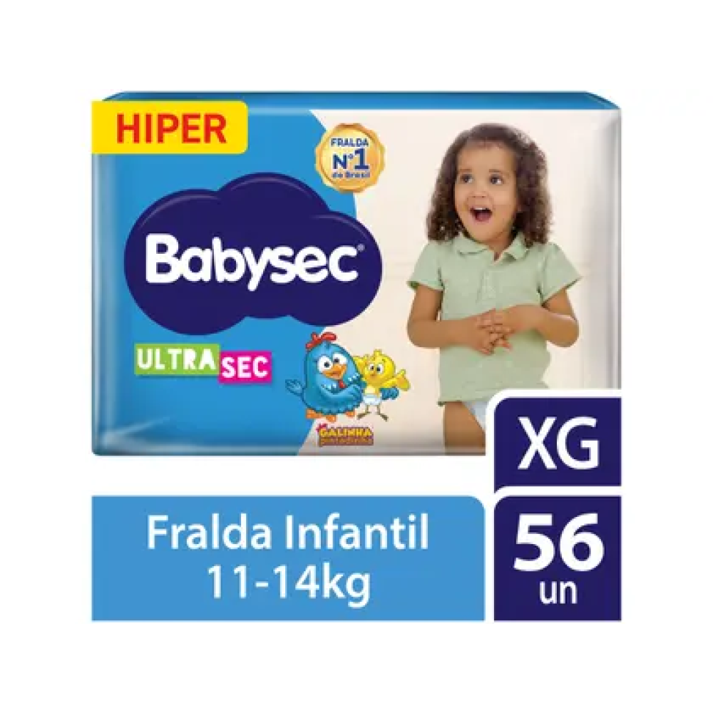 A Fralda Babysec Ultra Hiper com 56 Fraldas Tamanho XG (11 a 14kg) foi desenvolvida para garantir proteção, conforto e segurança para o bebê ao longo do dia e da noite. Possui alta capacidade de absorção, ajudando a manter a pele seca por mais tempo, além de ajuste anatômico que proporciona liberdade de movimentos. Ideal para o uso diário, oferece praticidade e cuidado essenciais na rotina de higiene do bebê.