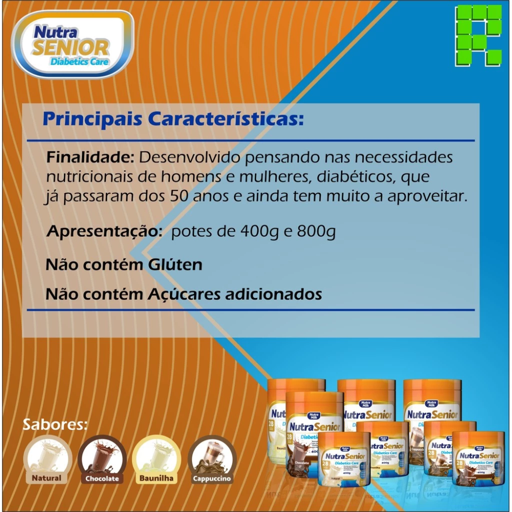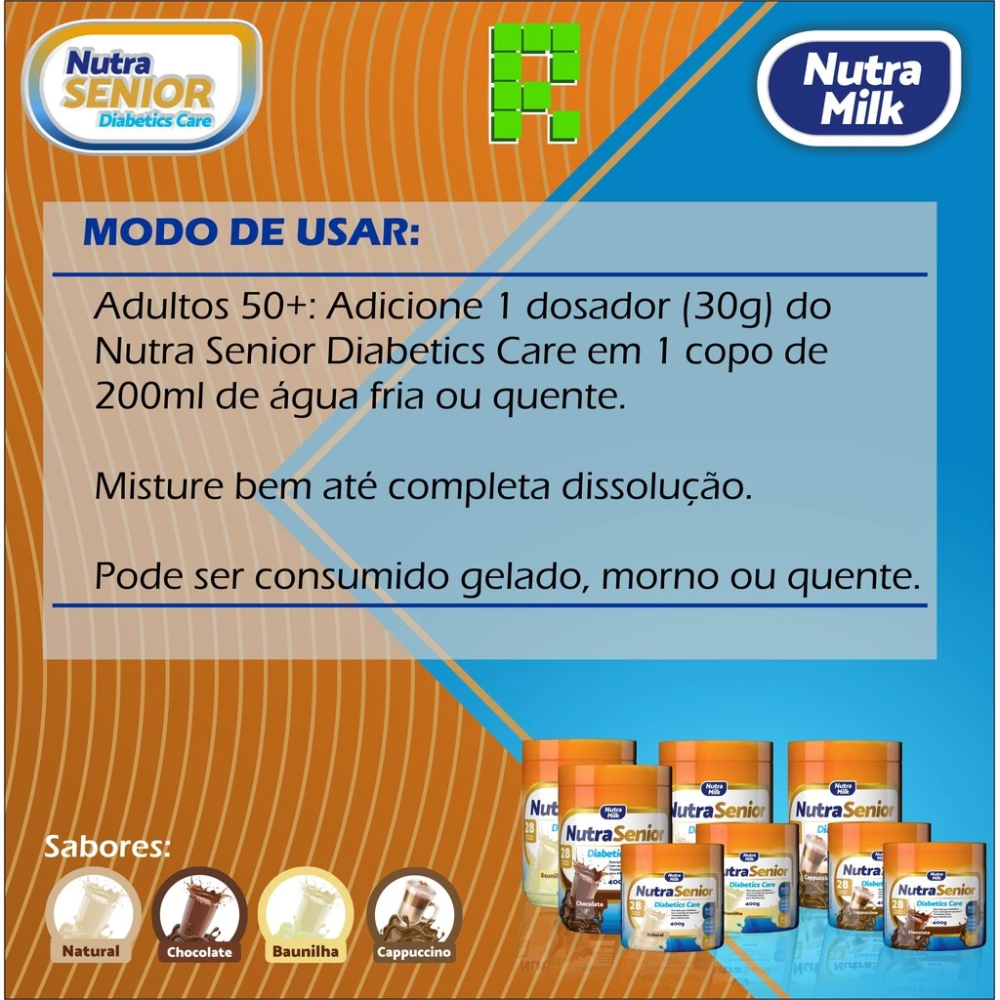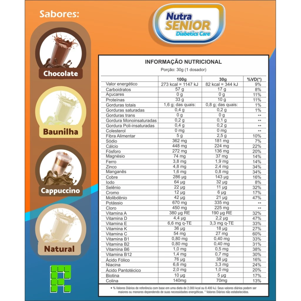 O Nutra Senior Diabetics Care Sem Sabor 400g é um suplemento nutricional especialmente desenvolvido para auxiliar na alimentação de pessoas com diabetes ou que necessitam controlar melhor a ingestão de açúcares.