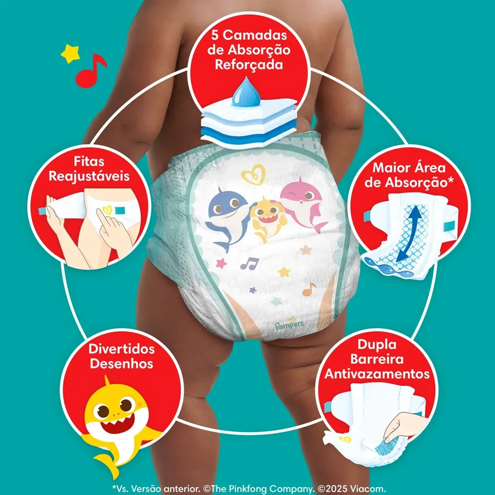 Possui ajuste confortável, materiais suaves e design anatômico que se adapta perfeitamente ao corpo do bebê, permitindo liberdade de movimento durante o dia e a noite. O pacote com 42 fraldas descartáveis é ideal para garantir praticidade e ótimo rendimento no dia a dia.